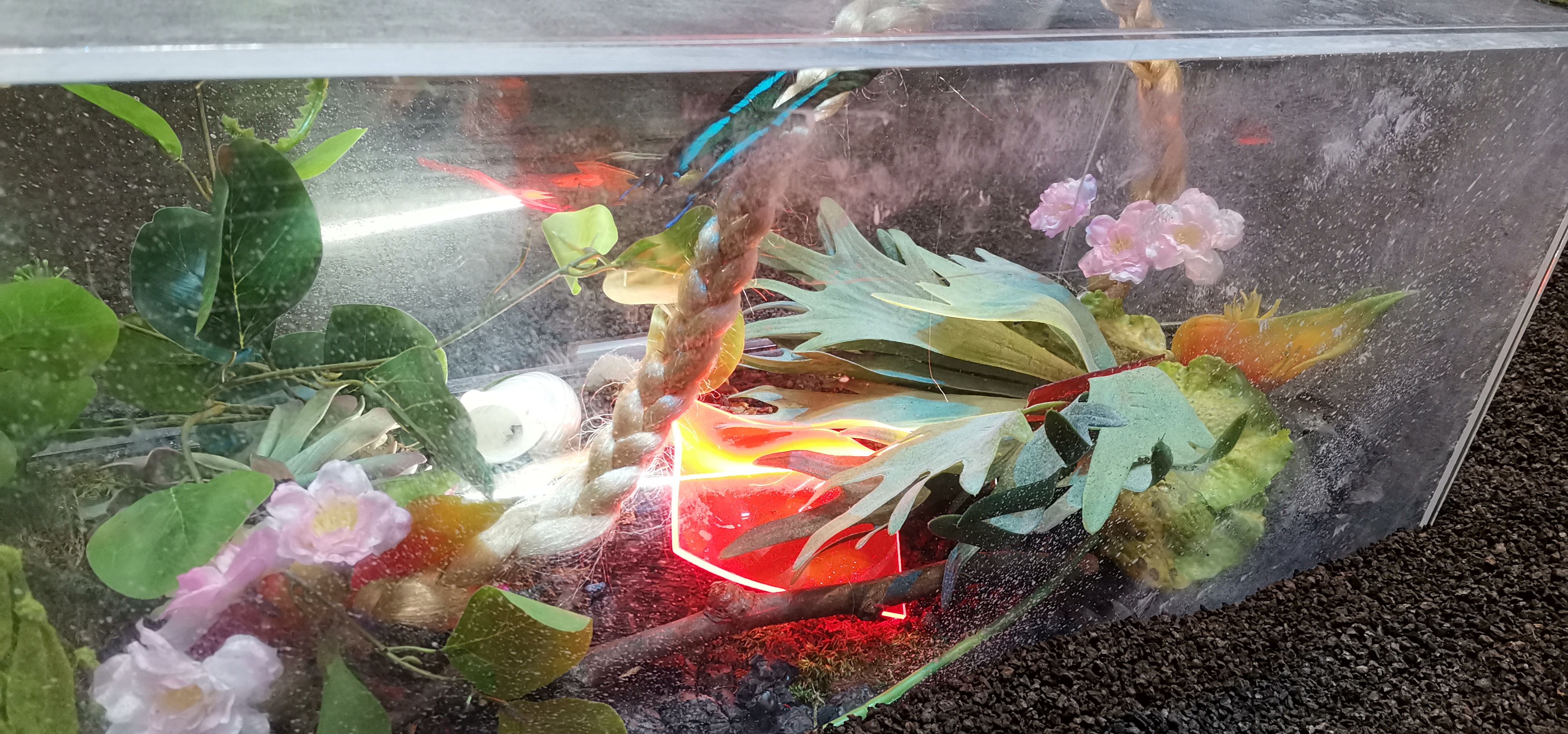 Doch die Natur hat ihre Unschuld verloren, sie ist nicht mehr heil, im Szenario auf der Bühne wurden Spuren von toxischer Zerstörung hinterlassen. Das Publikum betrachtet eine gemalte Panorama-Landschaft, die an Illusionsräume aus der Spät-Romantik erinnert. Gleichzeig wird auf einer Video-Ebene jetziger Hyper-Pop zitiert, der wiederum auf analog hergestellte Live Musik trifft, wie aus einer vordigitalen Ära anmutend. In dem sich durch die verschiedenen Zeiten und Wahrnehmungs-Schichten pulsierenden Szenario erscheinen und verschwinden die Performer*innen. Ihre Körper erzählen Geschichten vom »Geworfensein«. Vom digitalen Overflow, von der aktuellen ökologischen Krise, vom Artensterben, von Verlusten und deren Endgültigkeiten. Aber auch von der Liebe.